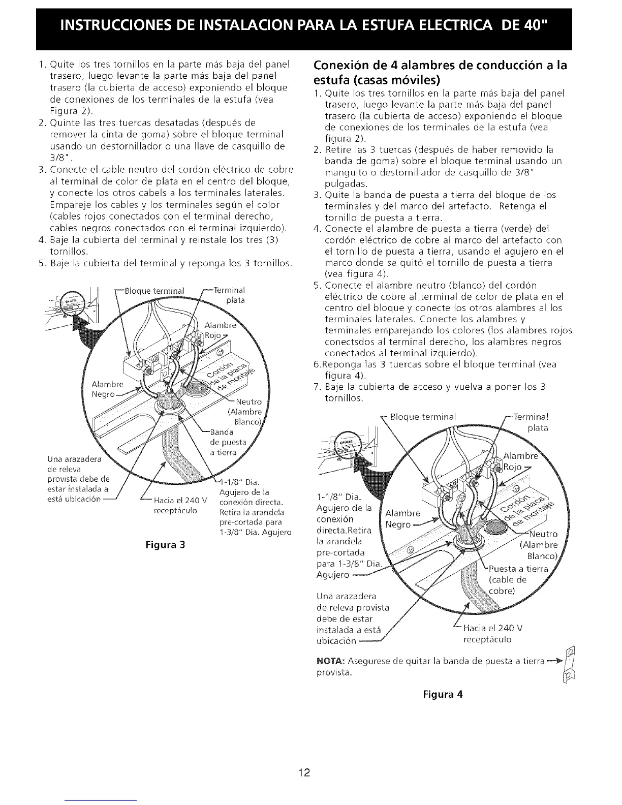 de conexiones de los terminales de la estufa (vea