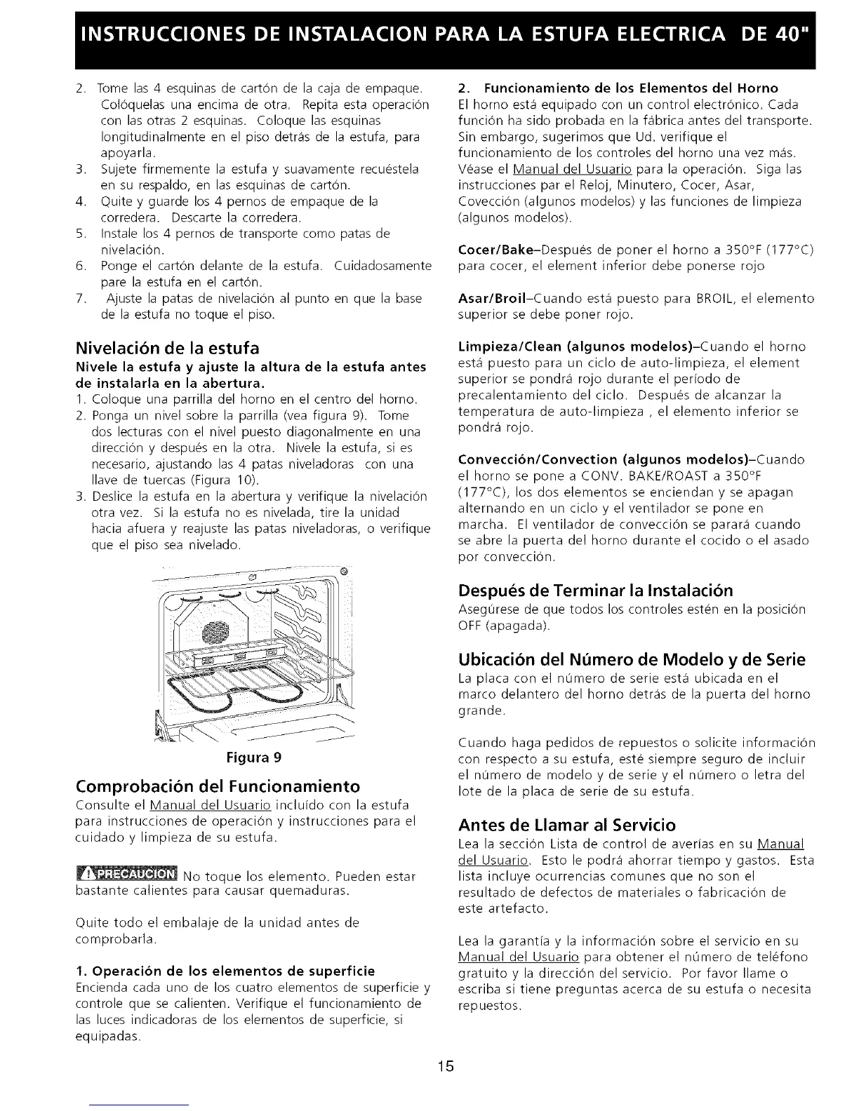 direcciOn y despues en la otra. Nivele la estufa, si es