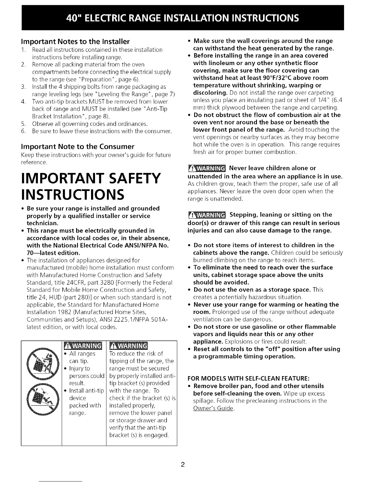 back of range and MUST be installed (see "Anti-Tip