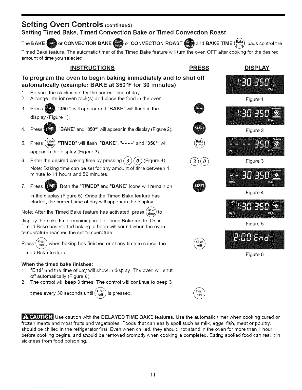 Use caution with the DELAYED TIME BAKE features. Use the automatic timer when cooking cured or