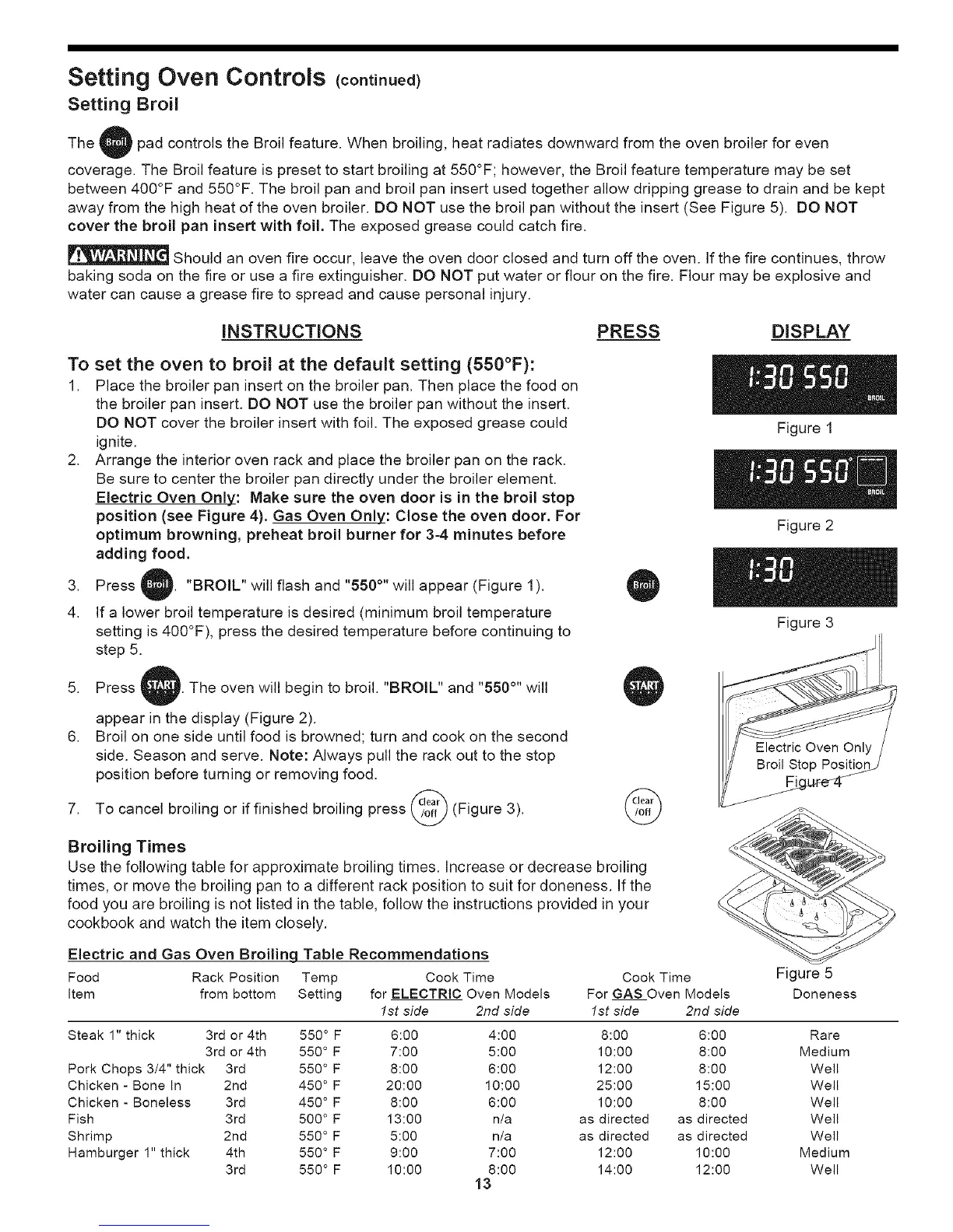 coverage. The Broil feature is preset to start broiling at 550°F; however, the Broil feature temperature may be set