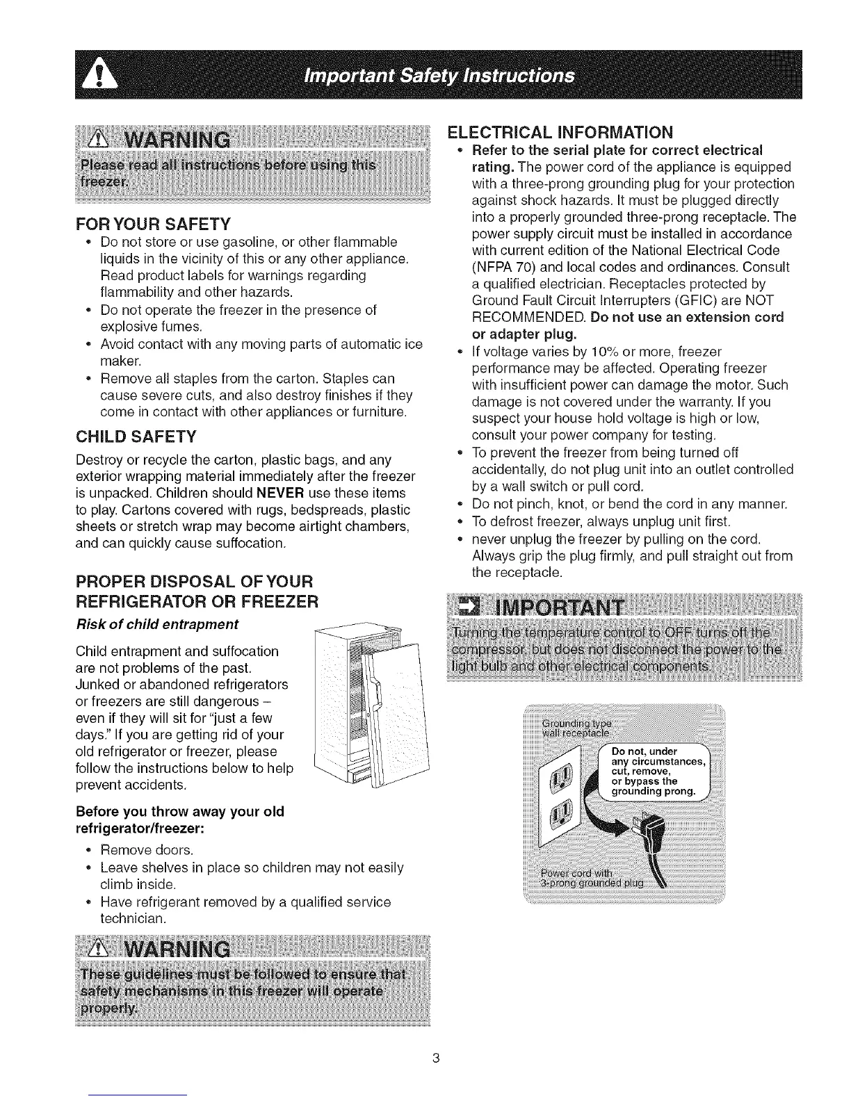 * never unplug the freezer by pulling on the cord.