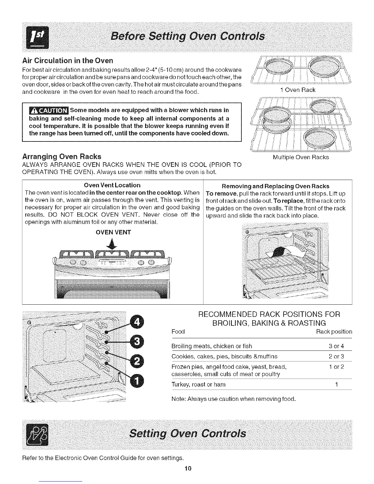 ALWAYS ARRANGE OVEN RACKS WHEN THE OVEN IS COOL (PRIOR TO