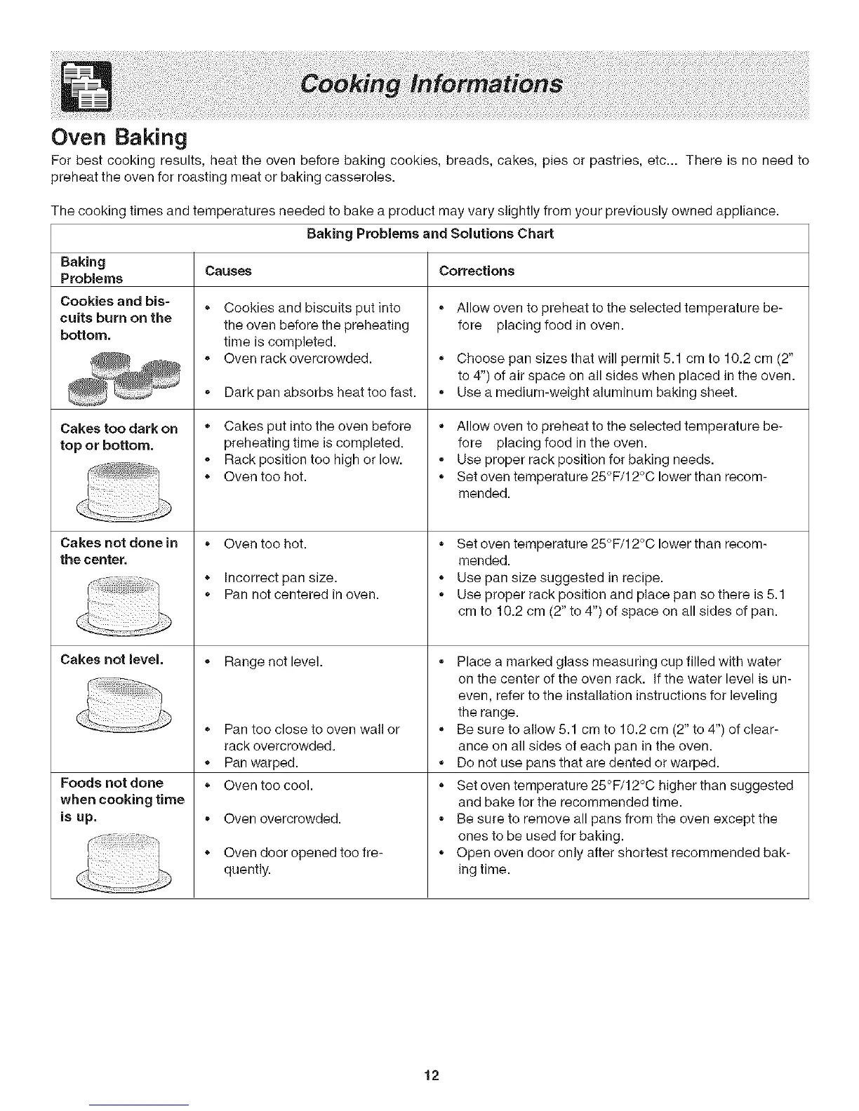 The cooking times and temperatures needed to bake a product may vary slightly from your previously owned appliance.