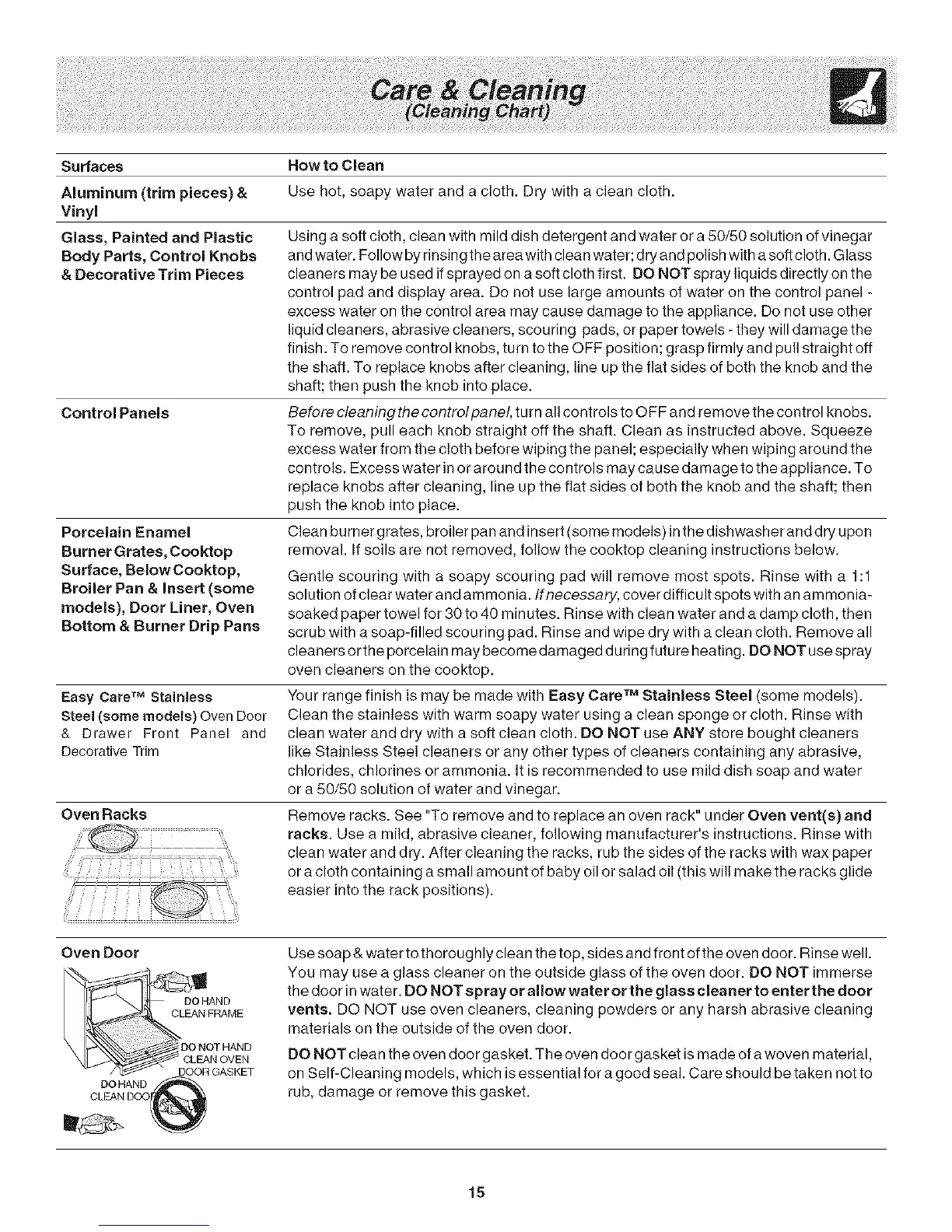 vents. DO NOT use oven cleaners, cleaning powders or any harsh abrasive cleaning