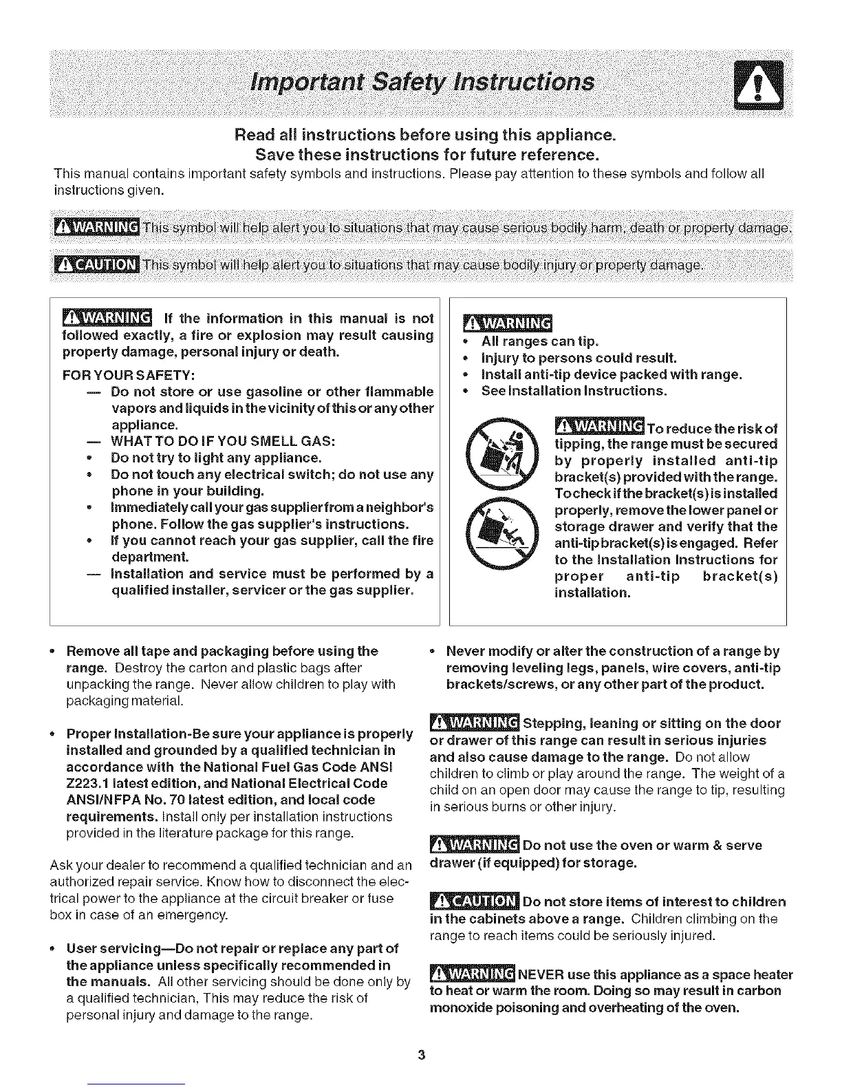 tipping, the range must be secured