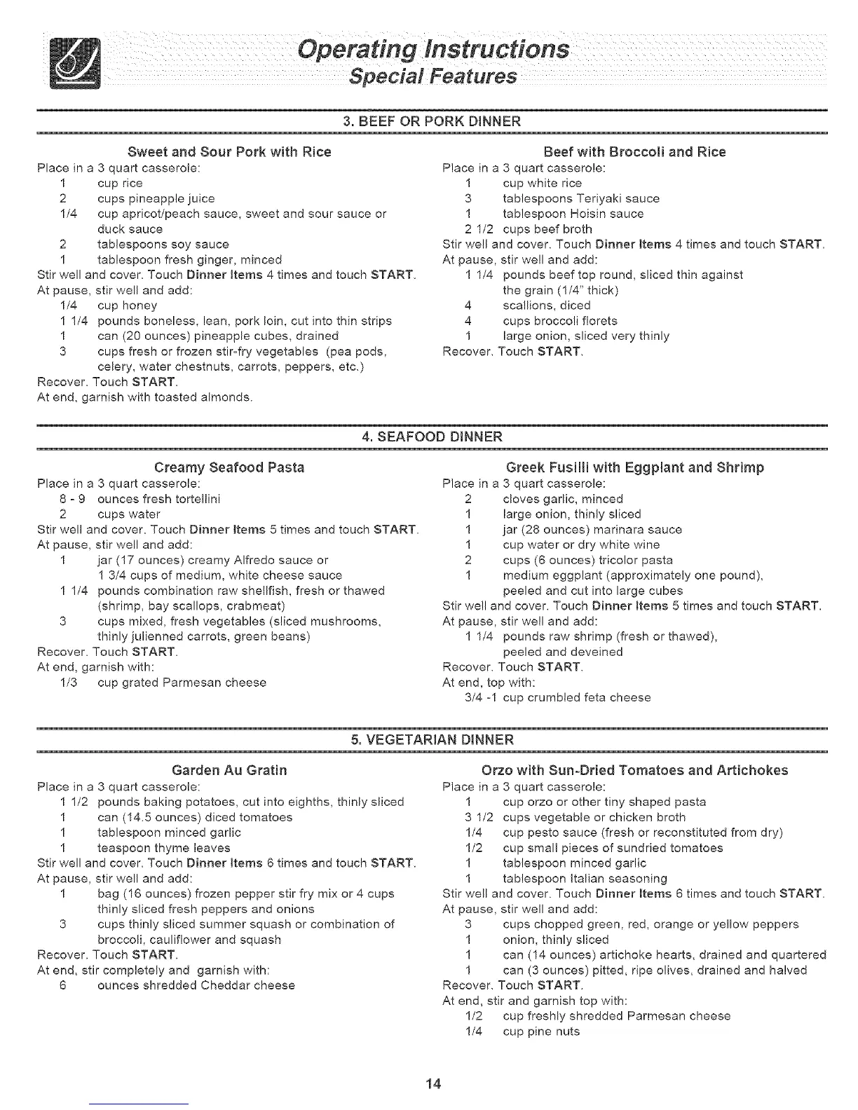 Stir well and cover. Touch Dinner Btems 6 times and touch START.