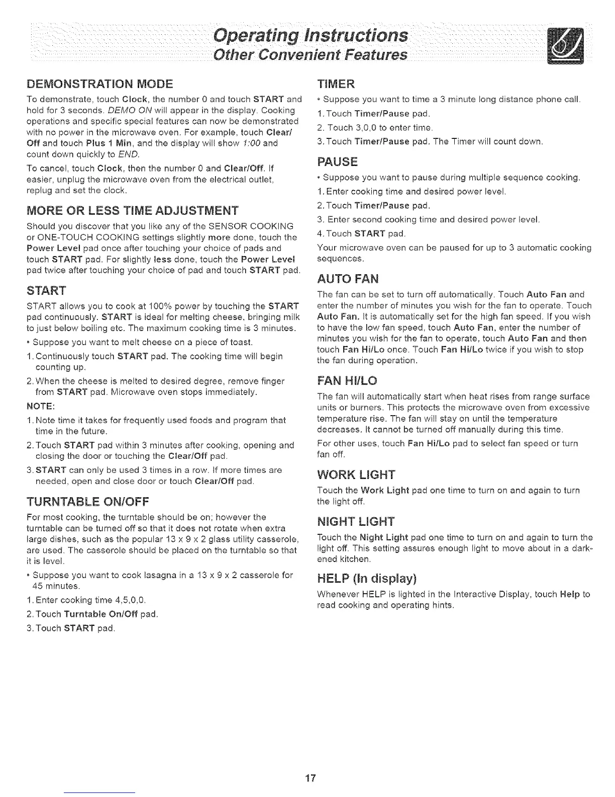 hold for 3 seconds. DEMO ON will appear in the display. Cooking