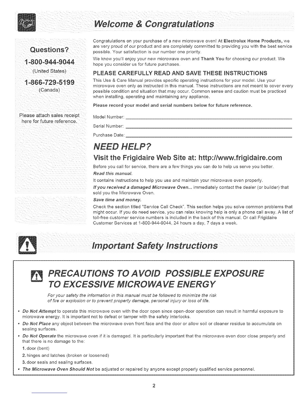 Congratulations on your ourcnase of a new microwave oven! At Electrolux Home Products. A/e