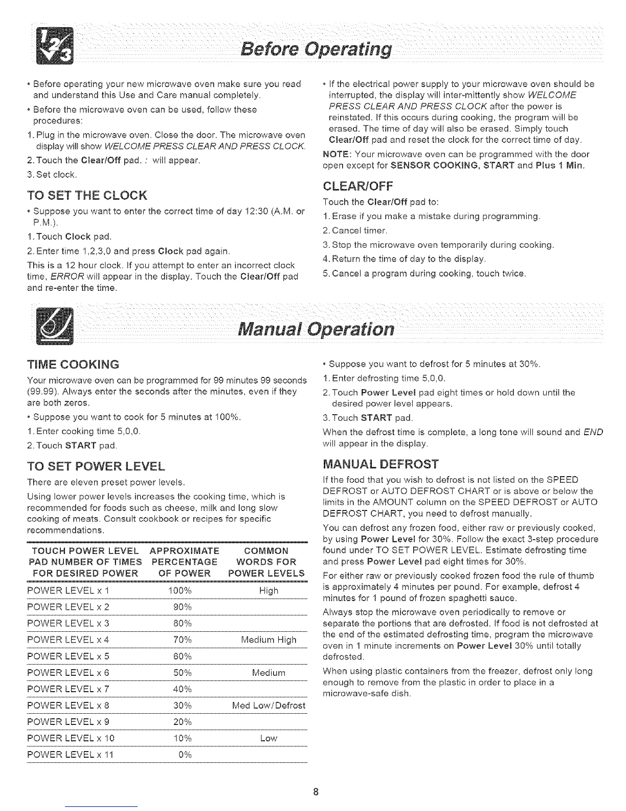 found under TO SET POWER LEVEL. Estimate defrosting time
