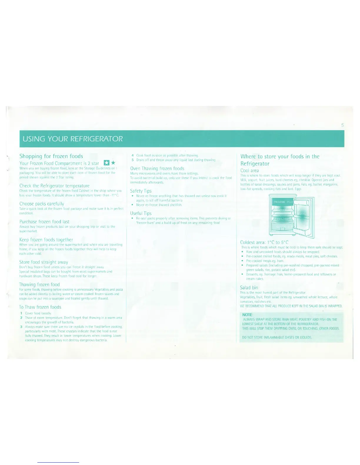 Frigidaire R5303B - Using Your Refrigerator; Shopping for Frozen Foods; Storing Frozen Foods; Thawing Frozen Food