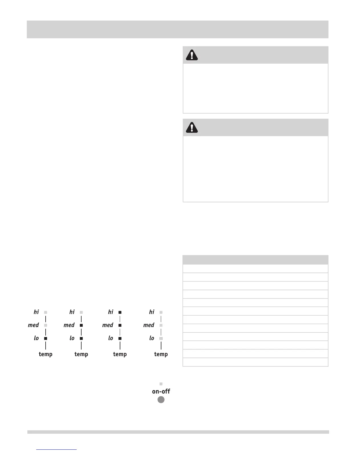 Keepwarmzonerecommendedfoodsettingstable