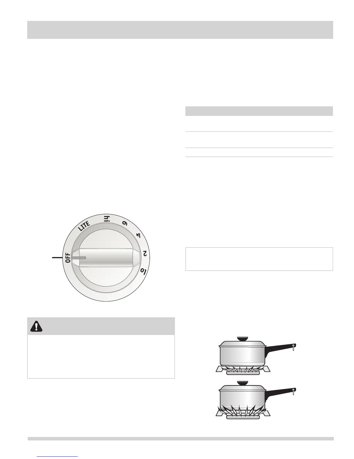 burner and ame size appropriate to the pan. Never allow