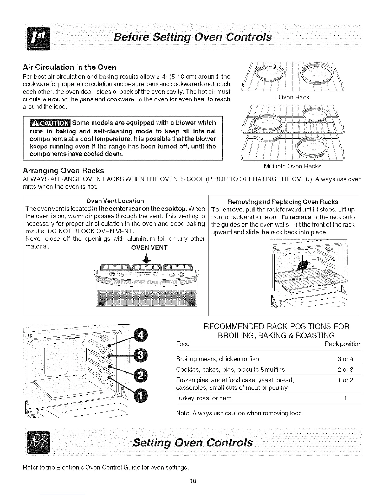 ALWAYS ARRANGE OVEN RACKS WHEN THE OVEN IS COOL (PRIOR TO OPERATING THE OVEN). Always use oven