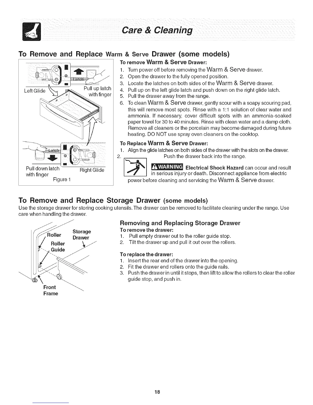 Use the storage drawer for storing cooking utensils. The drawer can be removed to facilitate cleaning under the range. Use