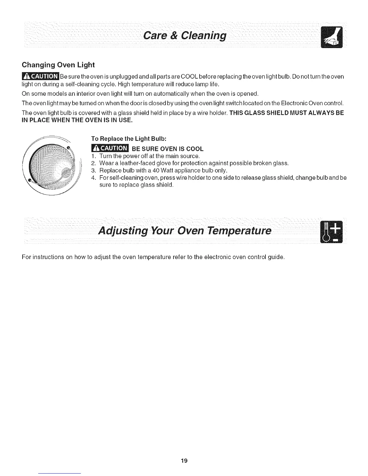 light on during a self-cleaning cycle. High temperature will reduce lamp life.