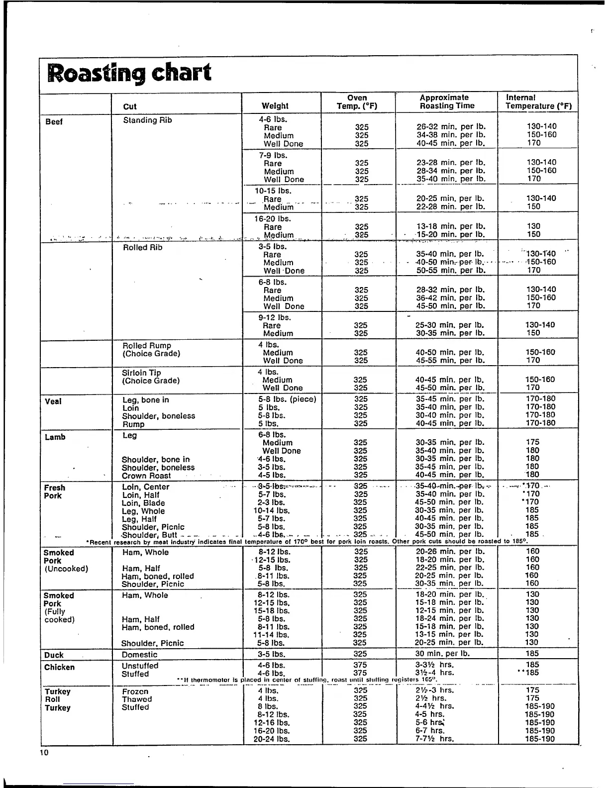 Frigidaire RBE-533 - Roasting chart