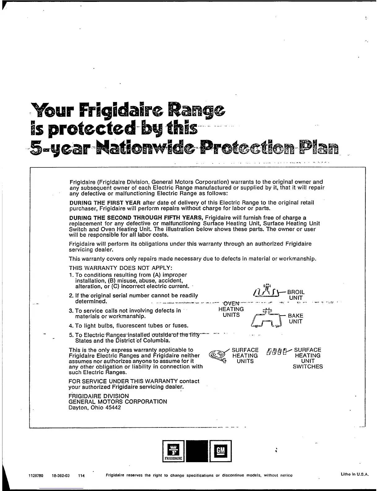 Frigidaire RBE-533 - 5-year Nationwide Protection Plan