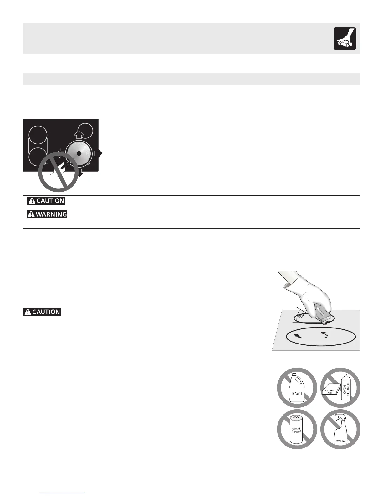 cooktop surface. Do not slide anything metal or glass across the cooktop. Do not use