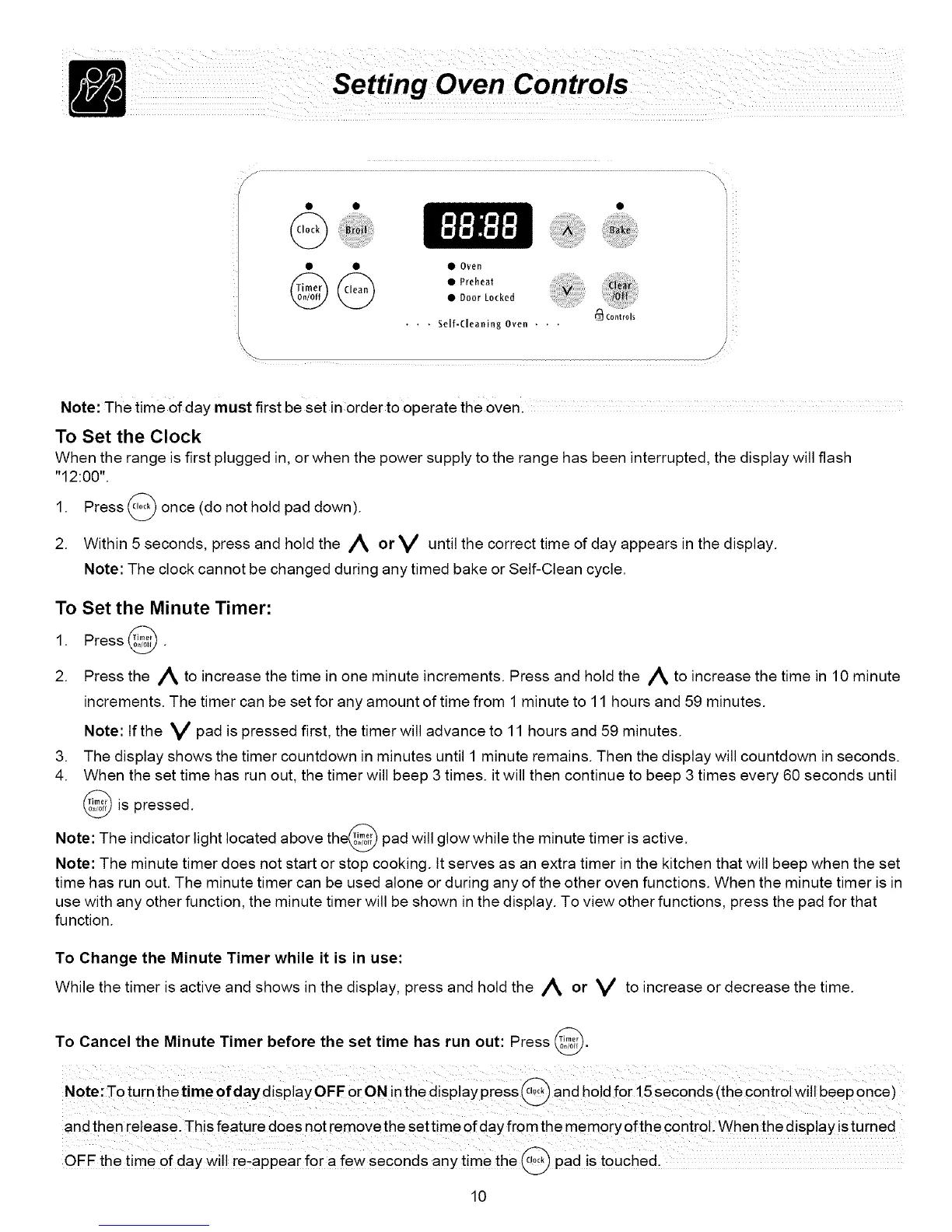 Note: The clock cannot be changed during any timed bake or Self-Clean cycle.
