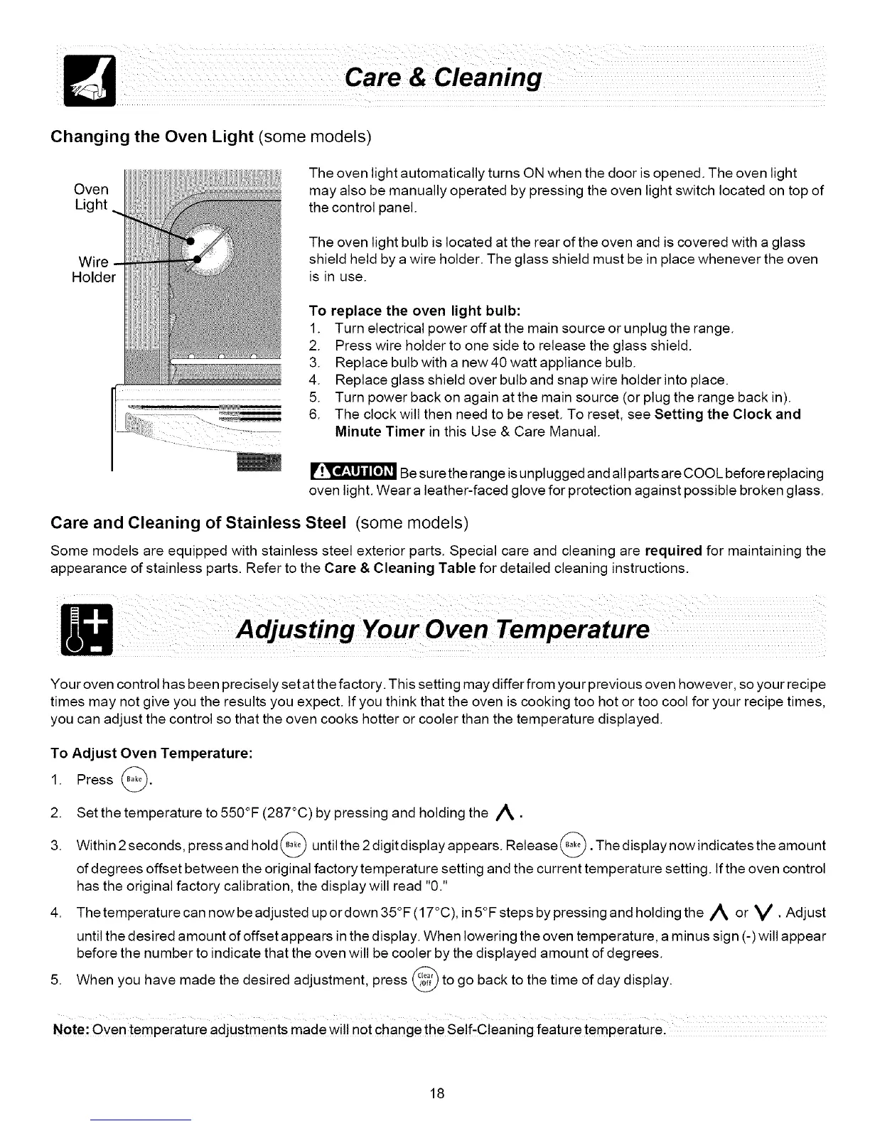Note: Oven temperature adjustments made wil! not change the Self,Cleaning feature temperature,