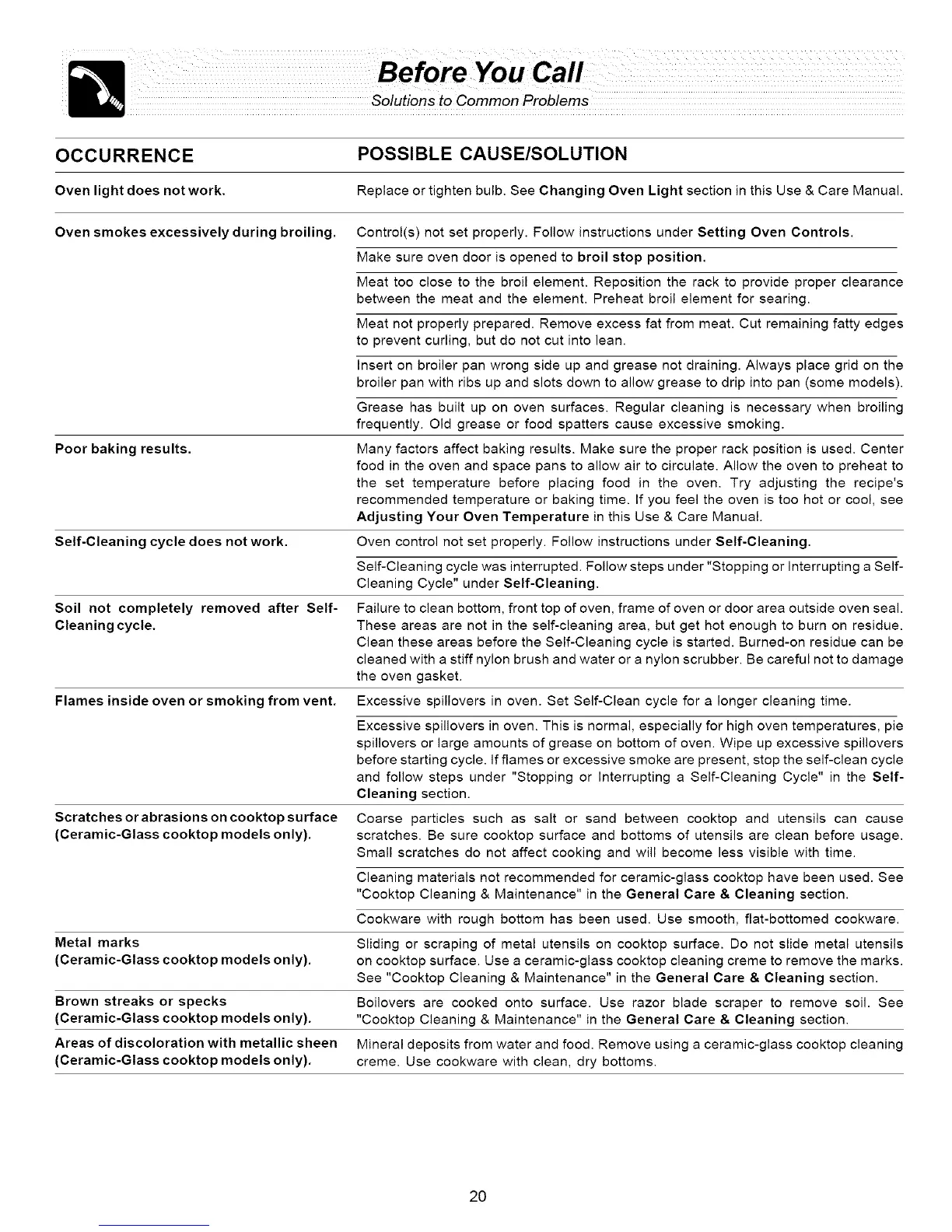 Sliding or scraping of metal utensils an caoktop surface. Do not slide metal utensils