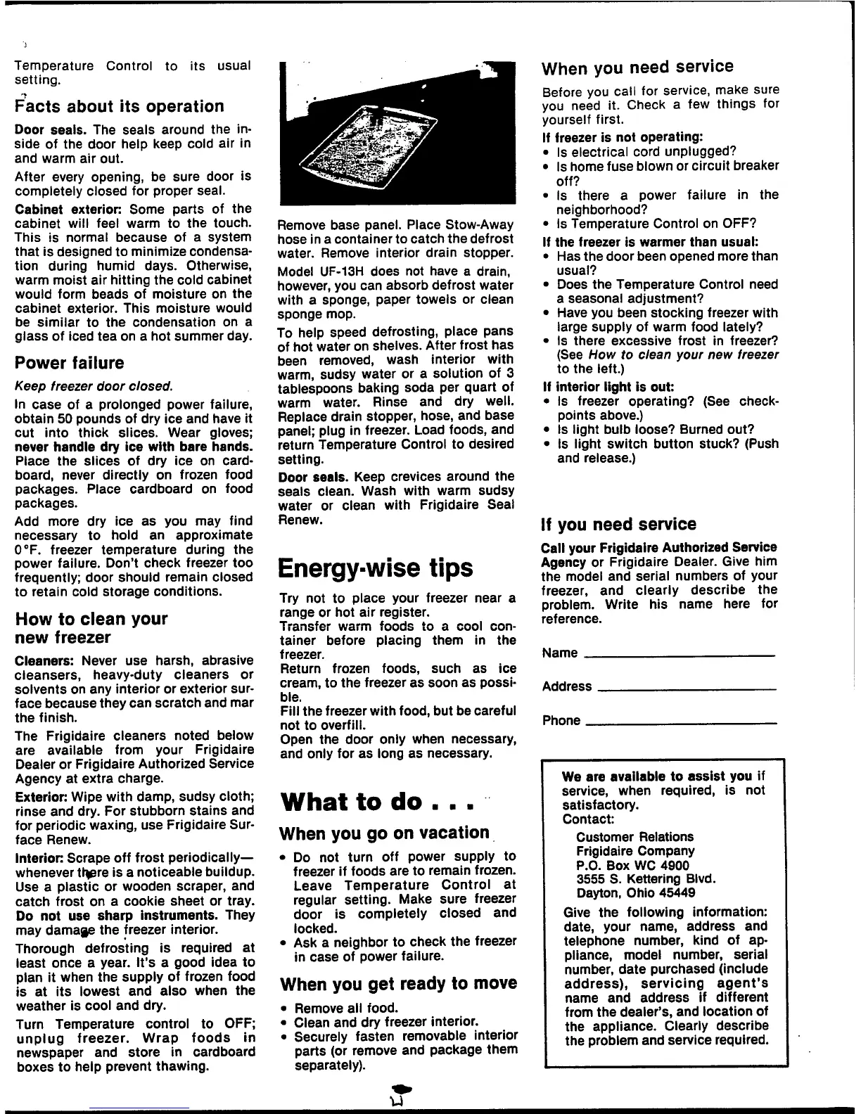 Frigidaire UF-13H - Energy-Wise Tips; Troubleshooting; Facts about Operation; Power Failure