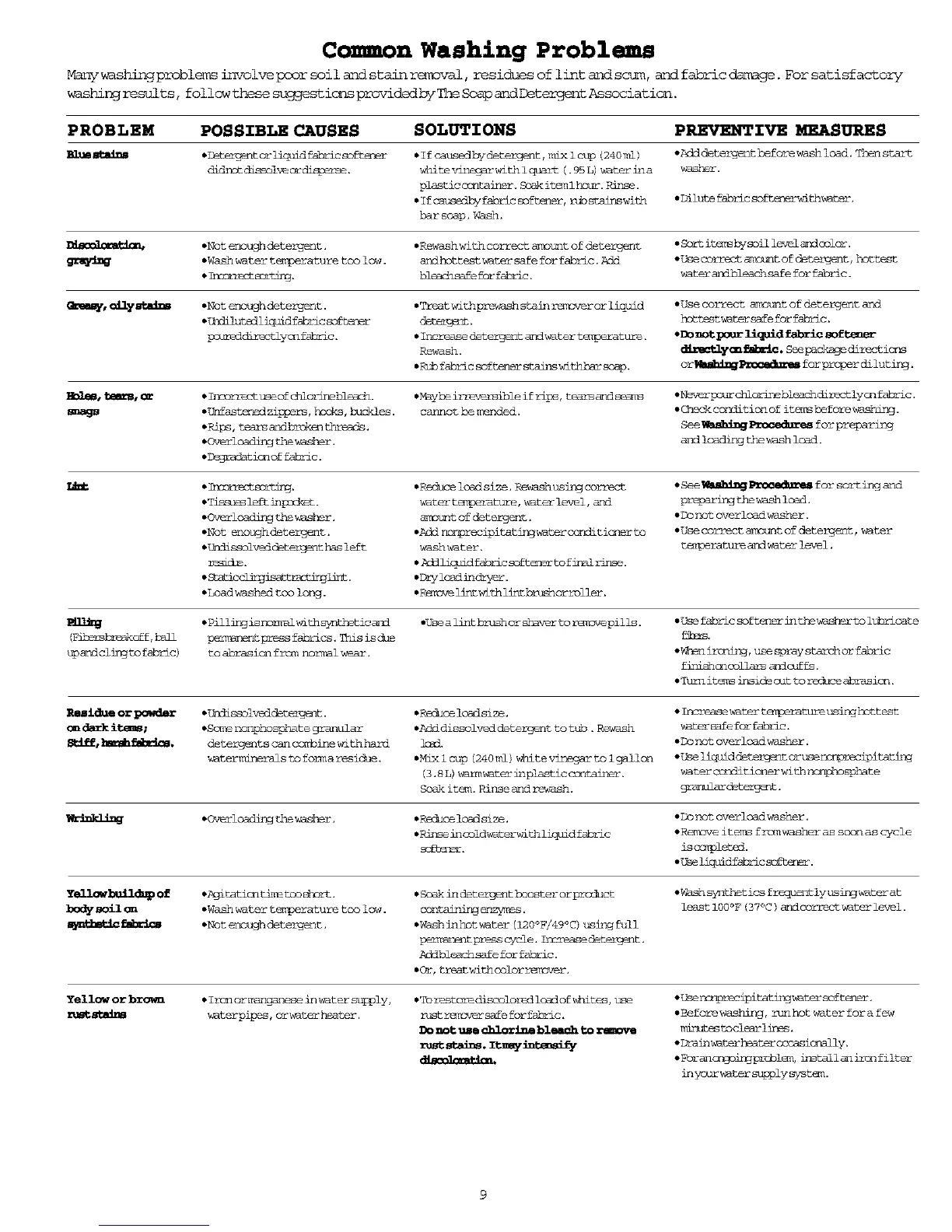 • Wash water t en_Derature too low. andhottest water safe for fabric. 2ktd eUse colm_ct _ssunt of detergent, _)ttest