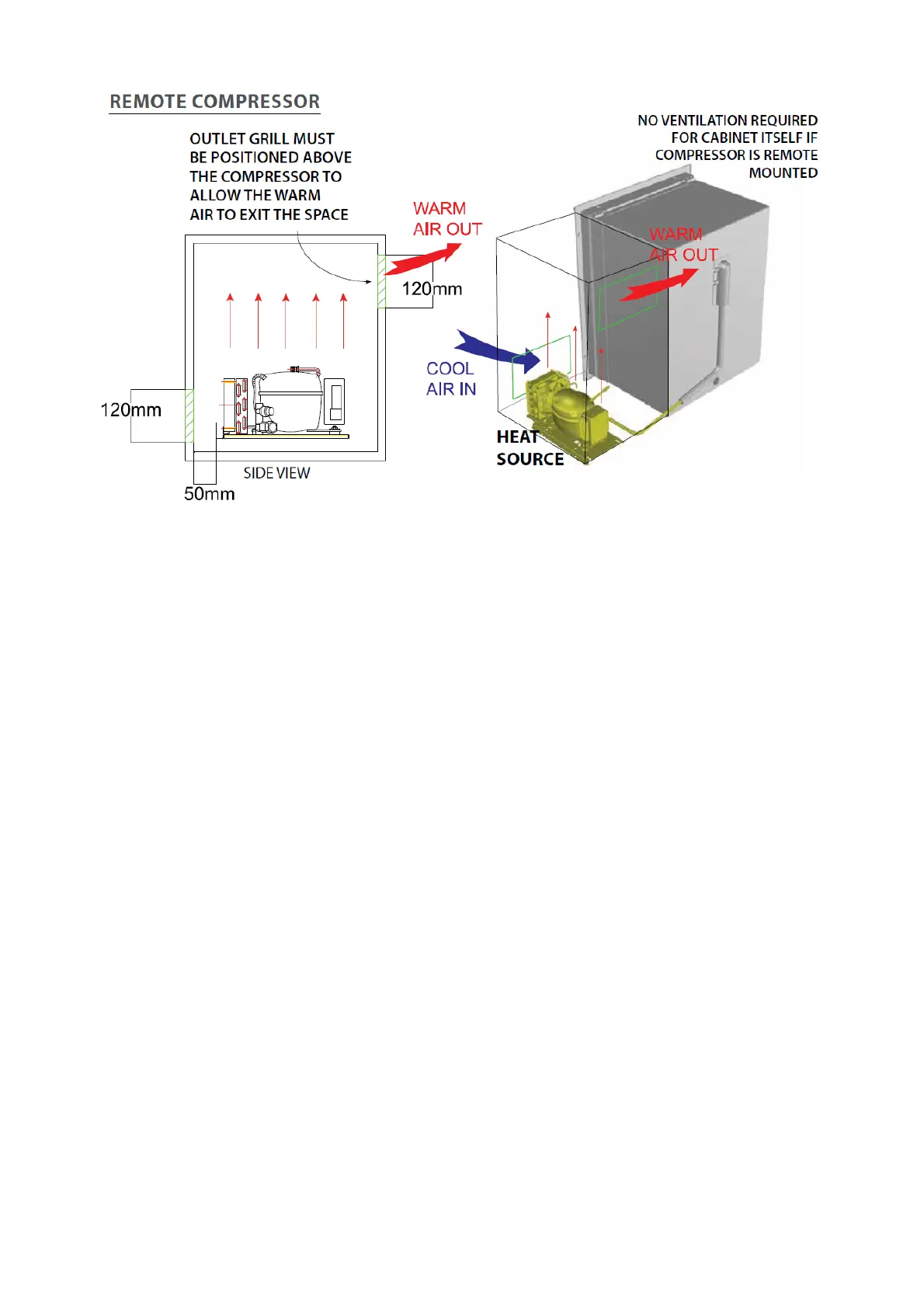 Do not install the unit free standing in a small compartment and take care that where the