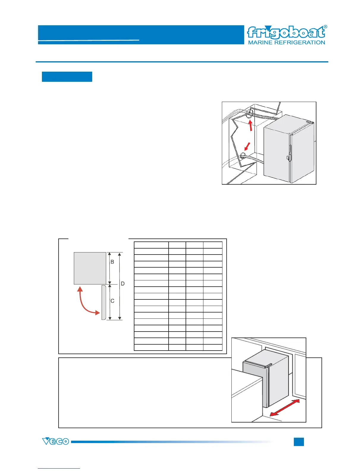 Locating the fridge/freezer, it is necessary to respect the surrounding area to open completely the door and