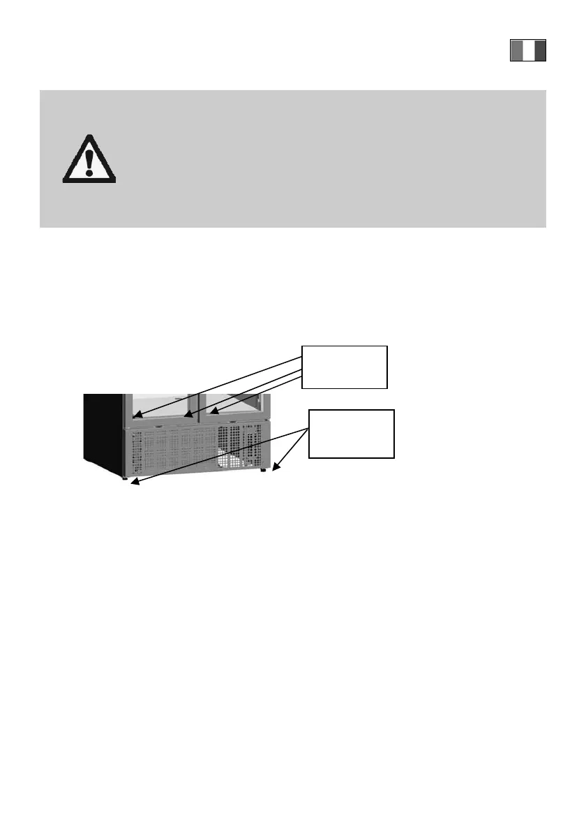 Effettuare la regolazione fino a livellamento completo del refrigeratore e verificare con una livella a