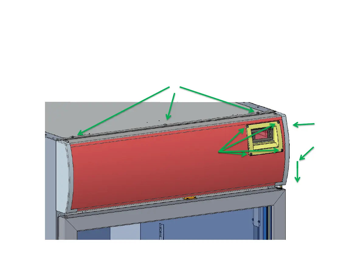 b. Закрепите панель рекламы с помощью 3 винтов-саморезов, как показано на рисунке.