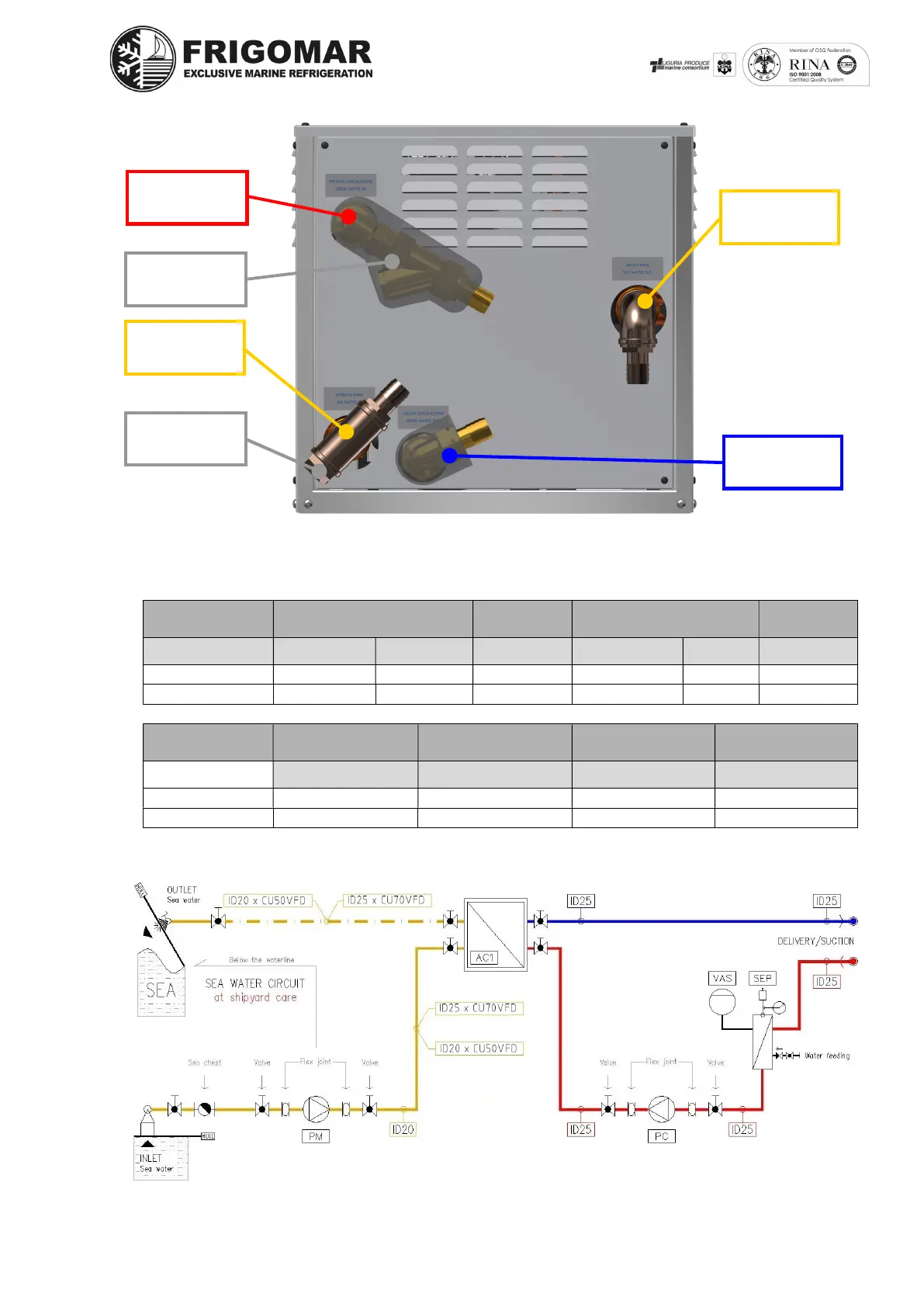 Chiller / Heat Fresh water flow (m3/h) Pipe inner Sea water flow (m3/h) Pipe inner