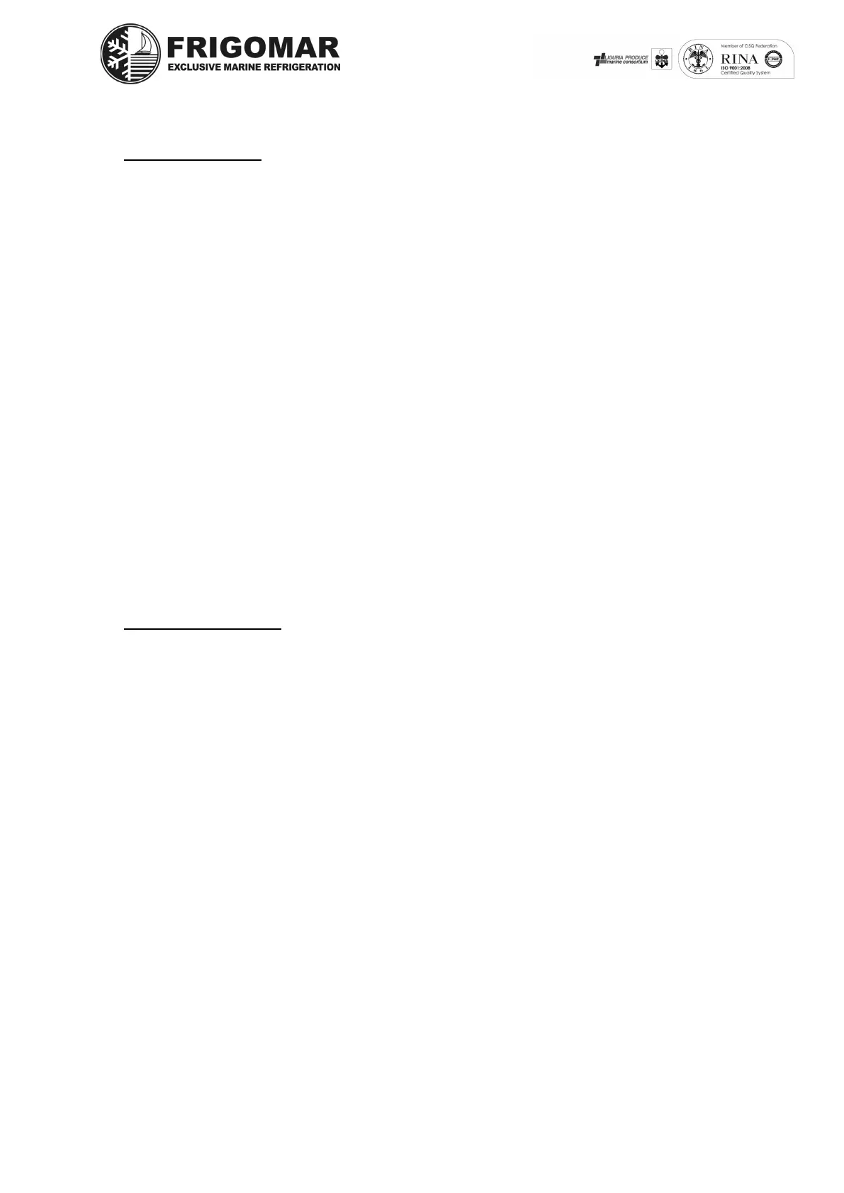 Frigomar guarantees all these products to be free from defects in materials or workmanship.