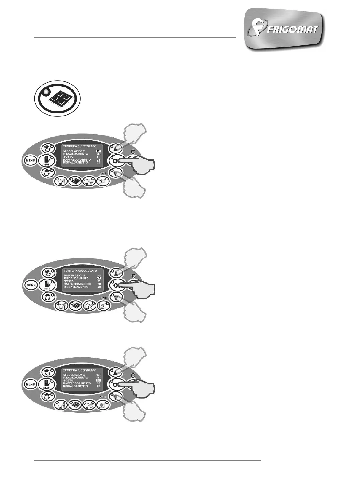 Premere il tasto “TEMPERA CIOCCOLATO” per entrare nella