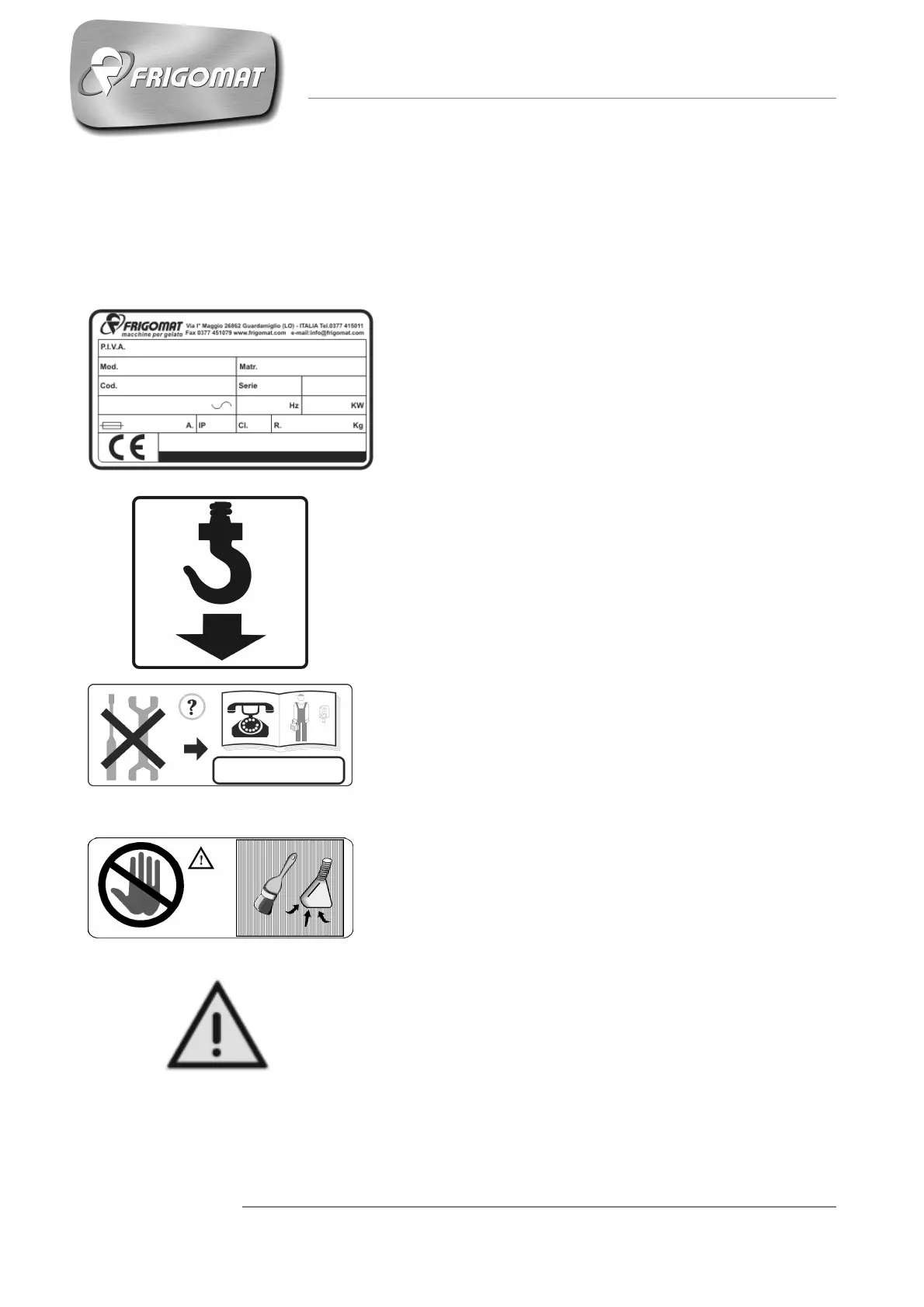 La macchina è dotata di una targa e alcuni pittogrammi la cui conoscenza, unitamente al presente