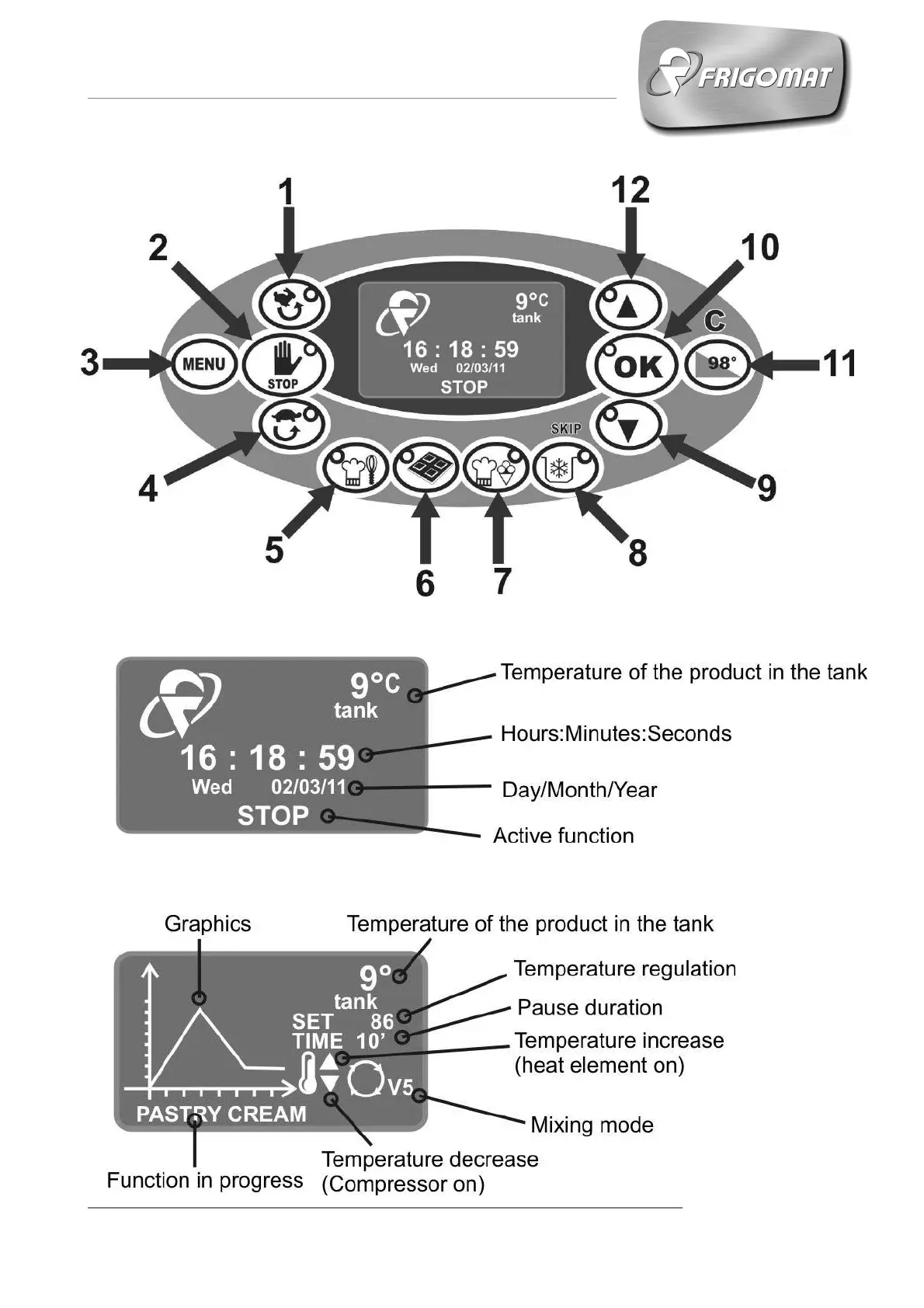 Frigomat CHEF 30 LCD - Control Panel Overview and Functions