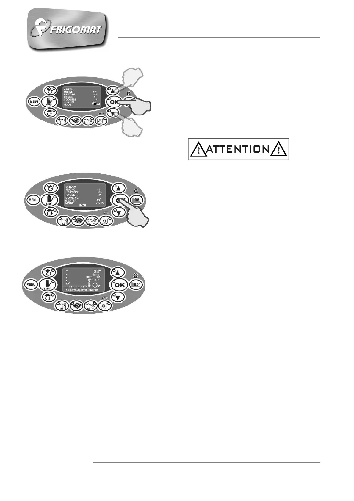 After having programmed the mixing speed, it is