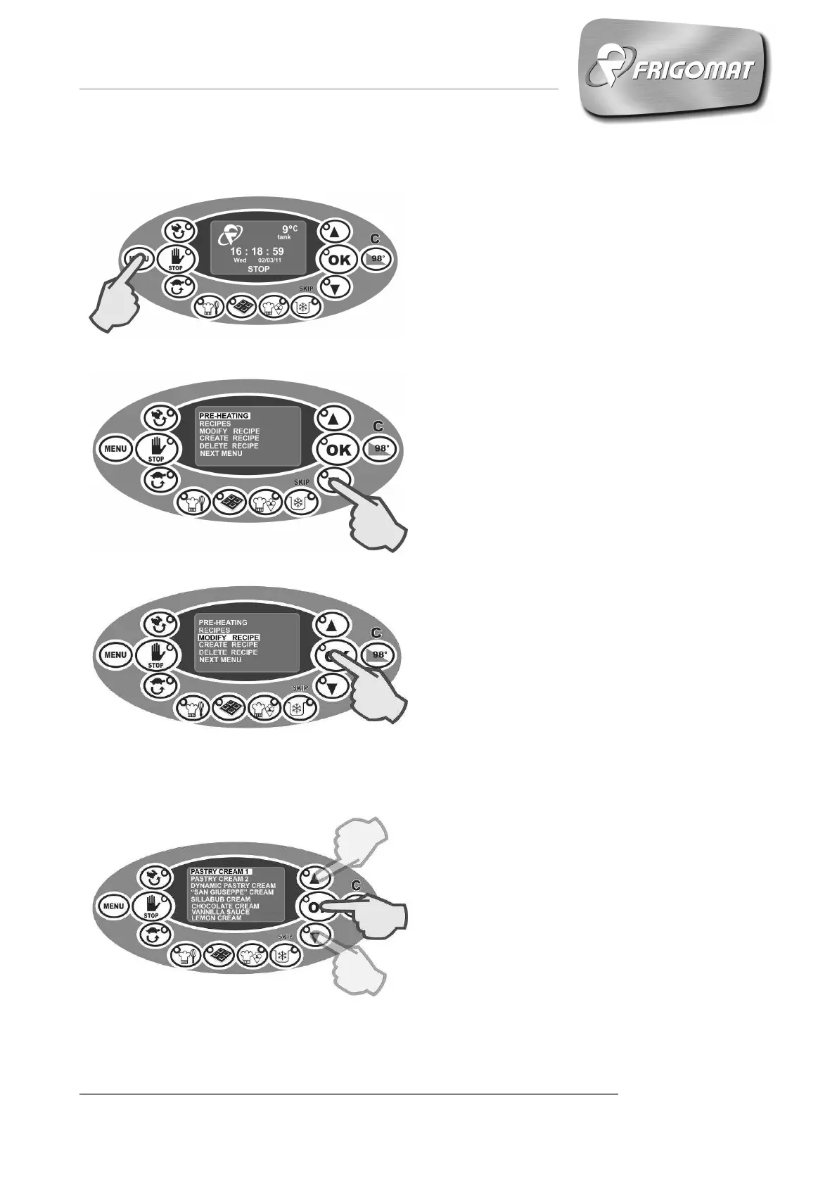 selecting the entry “MODIFY RECIPE”