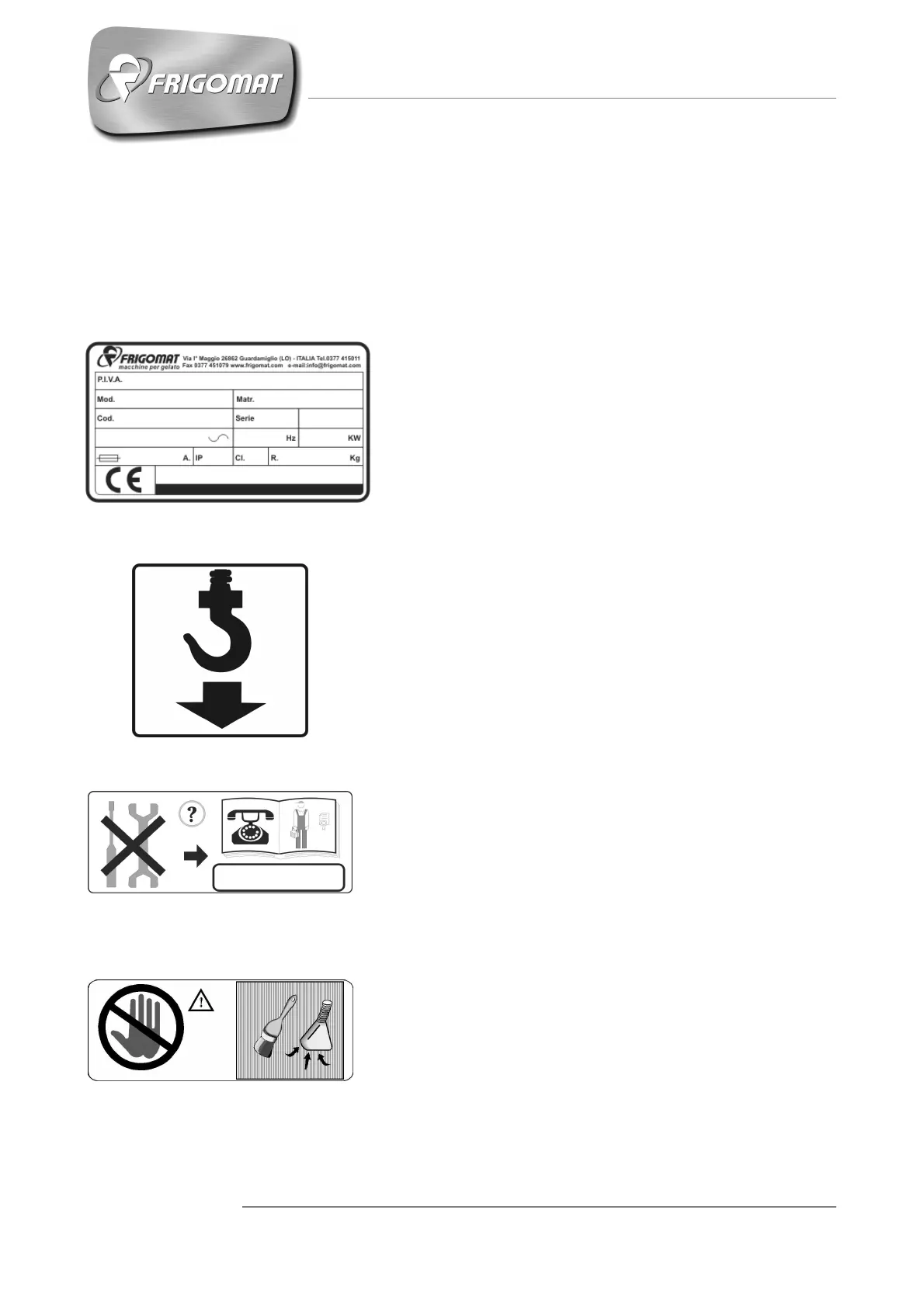 La machine est dotée d’une plaque et de pictogrammes; la connaissance de ceux-ci ainsi