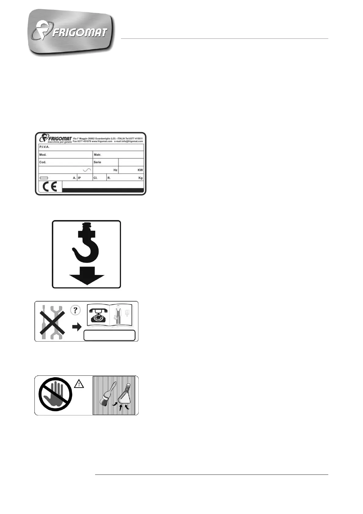 La machine est dotée d’une plaque et de pictogrammes ; la connaissance de ceux-ci ainsi