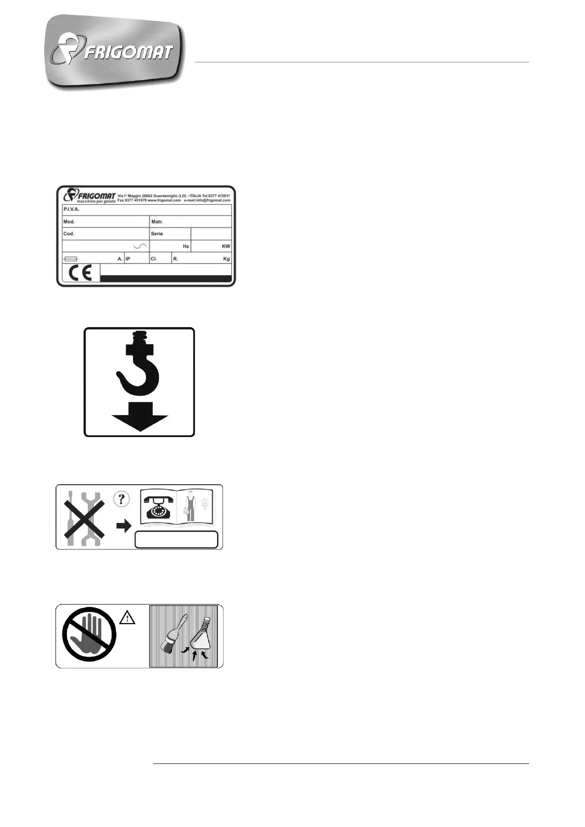La máquina cuenta con una placa y algunos pictogramas que usted debe conocer y