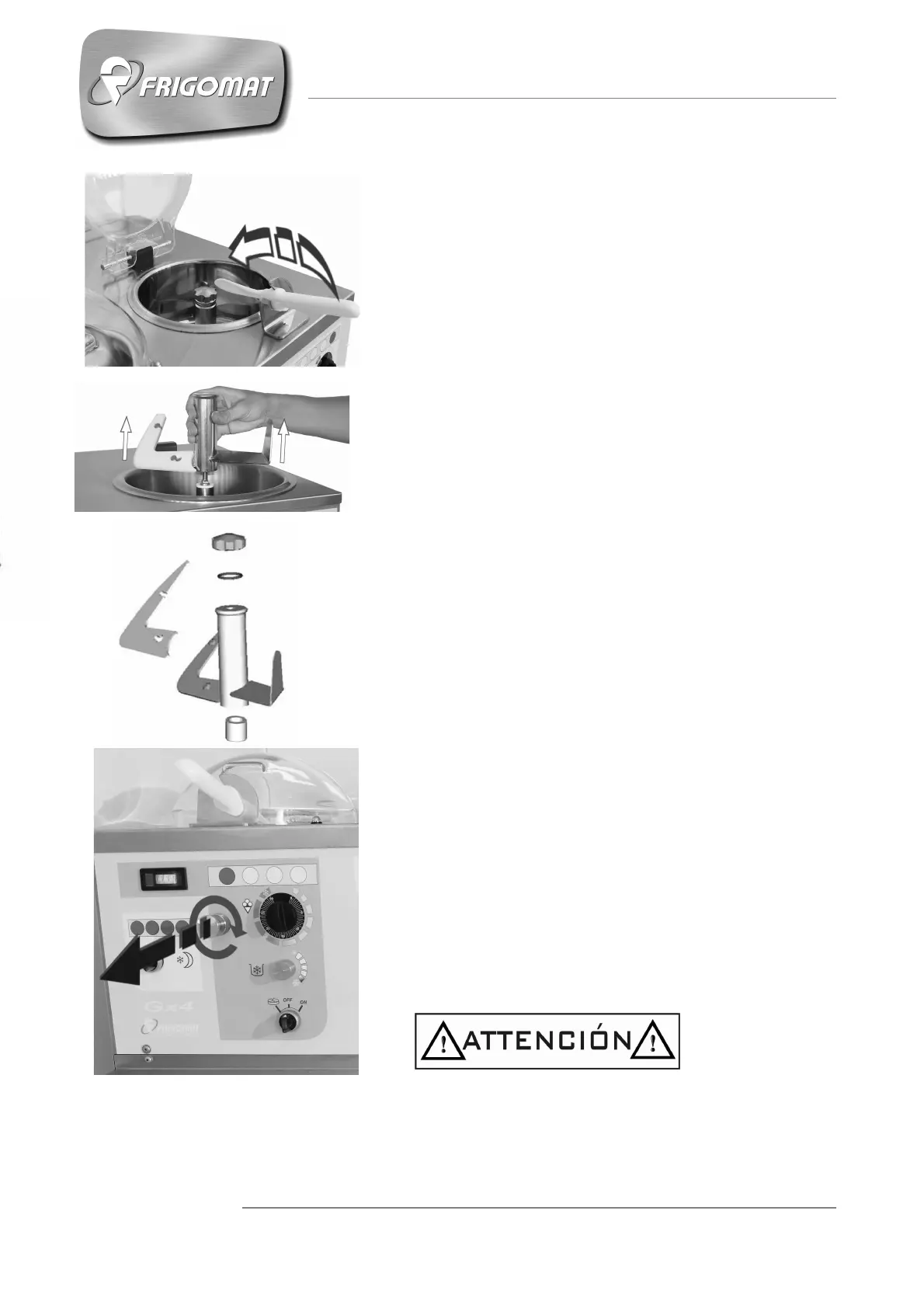 atención al conducto interno del eje agitador y a los