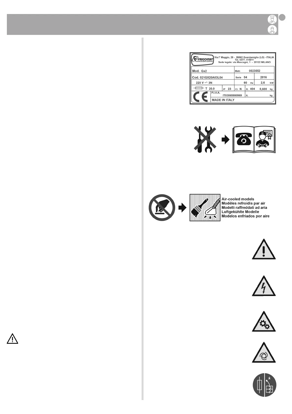 L’etichetta, valida per le macchine raffreddate ad aria, vieta di toccare con le