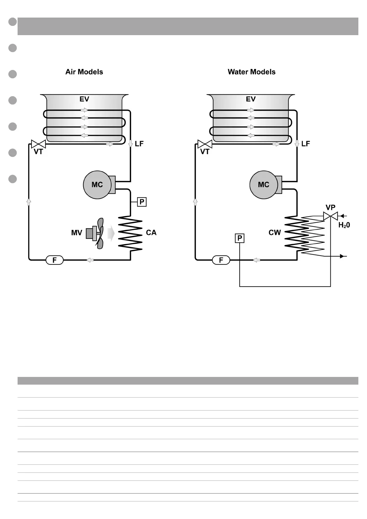 TAV 01 : (GX2, GX4) Schema circuito frigorifero ● Refrigerant circuit diagram Schéma du circuit frigorifique ● Kühlnetzplan ●