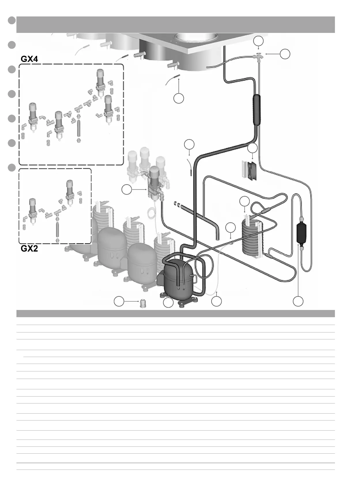TAV 03 : (GX2, GX4) Componenti circuito refrigerazione ● Refrigeration circuit components ● Composants du circuit de réfrigération ●