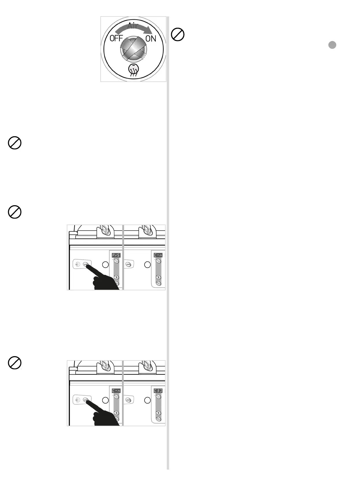 Check that the displays do not show the message "PWR", indicating that