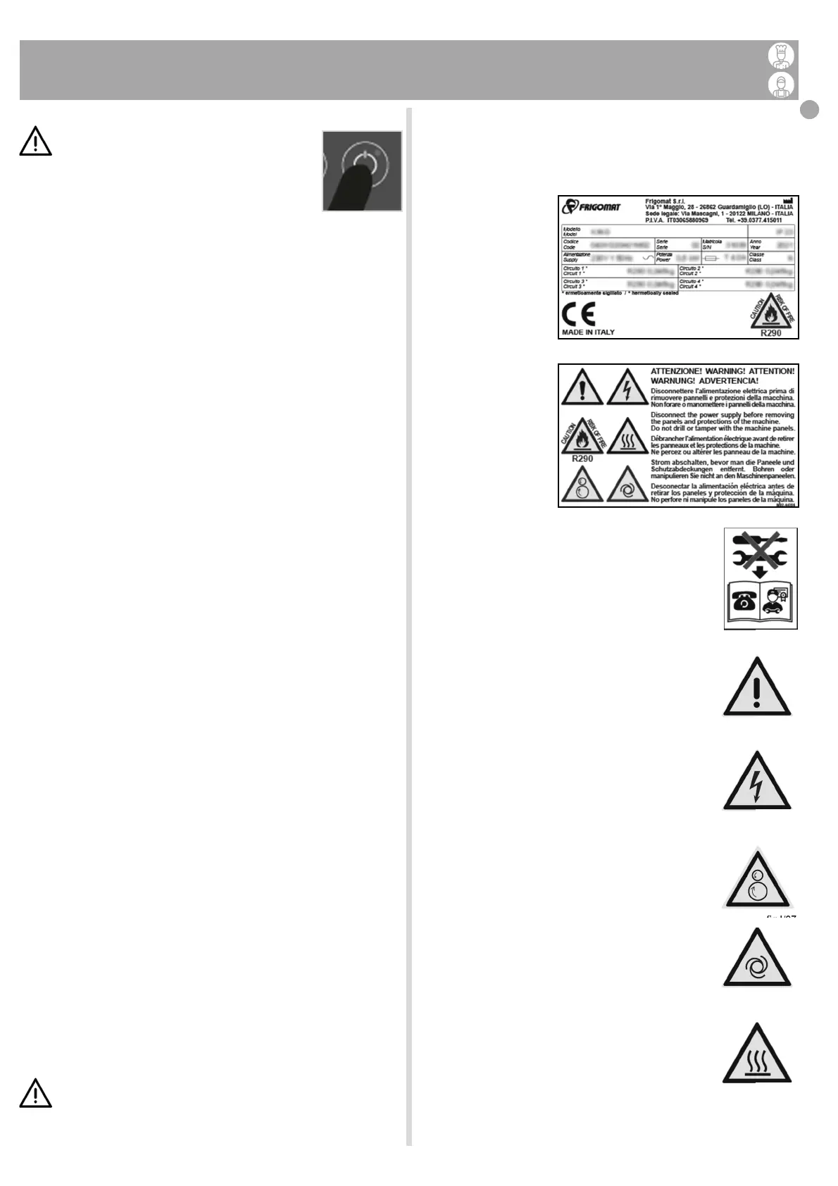 - The machine contains refrigerant gas cat. A3 (highly flammable) R290