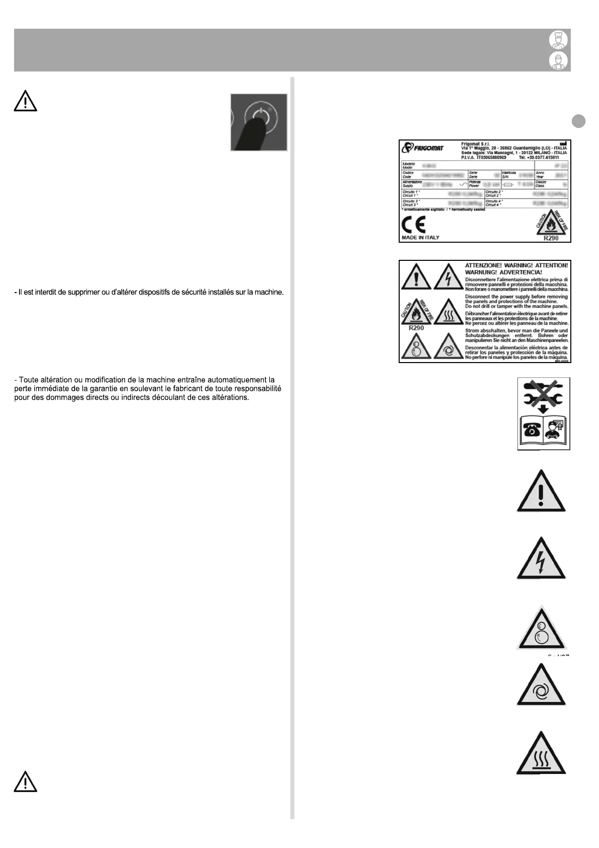 inflammable) R290 Propane. Veillez à ce que les opérateurs soient informés de