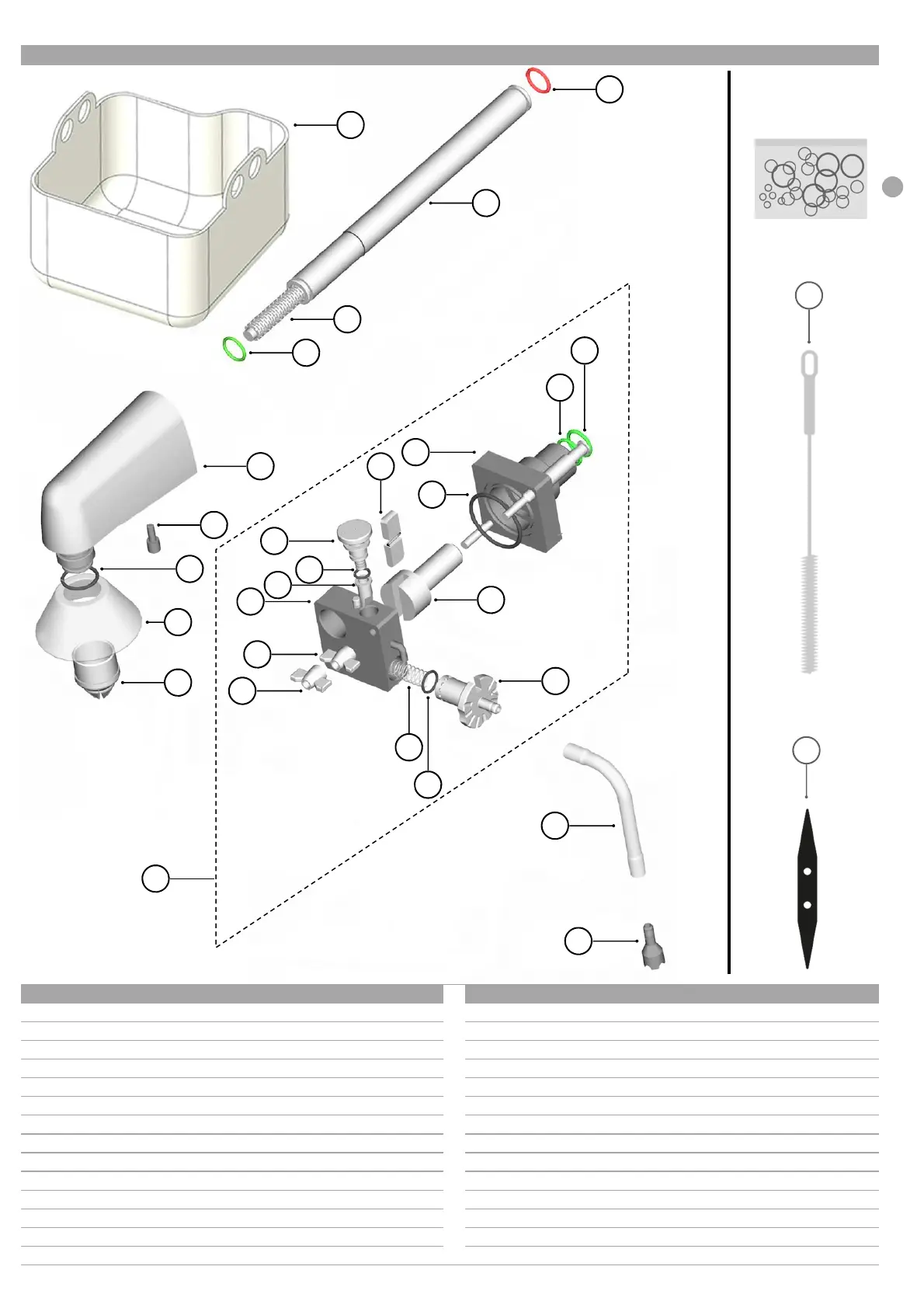 Vue eclatéee pour l’operateur, pièces détachées fournies